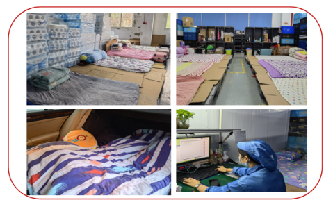 为减少疫情对生产带来的影响,在重庆政府各级领导的关怀下公司连轴奋战,在确保安全的前提下,车是床、地板是床、工作场所是床,里德家人克服重重困难,以厂为家,众志成城,闭环生产。